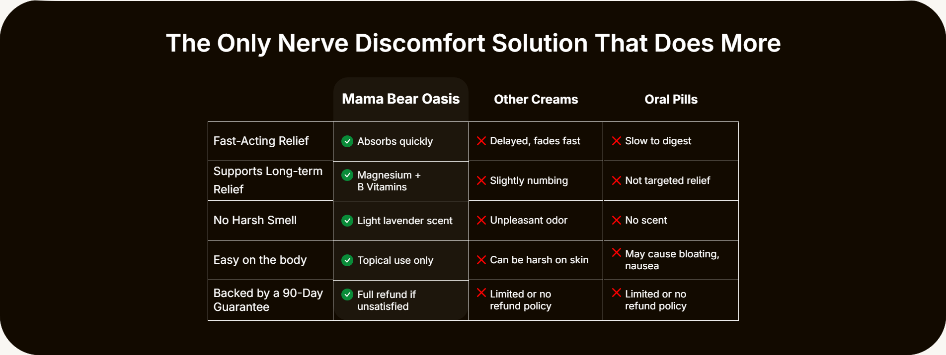 Mama Bear Nerve Relief Lotion delivers fast-absorbing, long-lasting comfort to calm burning, tingling, and nerve discomfort. Lightweight and non-greasy, it targets the source for soothing relief you can feel—anytime, anywhere.